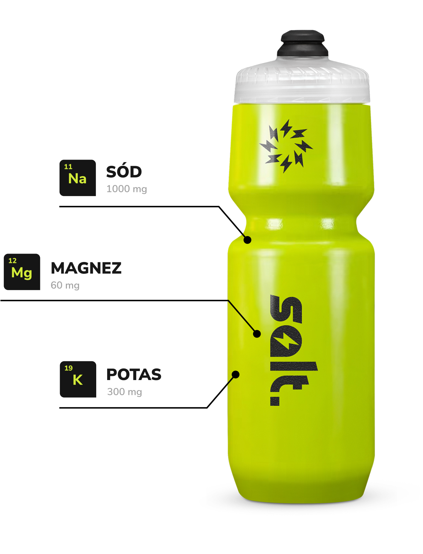 Dobraliśmy skład elektrolitów w salt. tak, aby był możliwie zbliżony proporcjom elektrolitów utraconych z potem podczas wysiłku fizycznego.