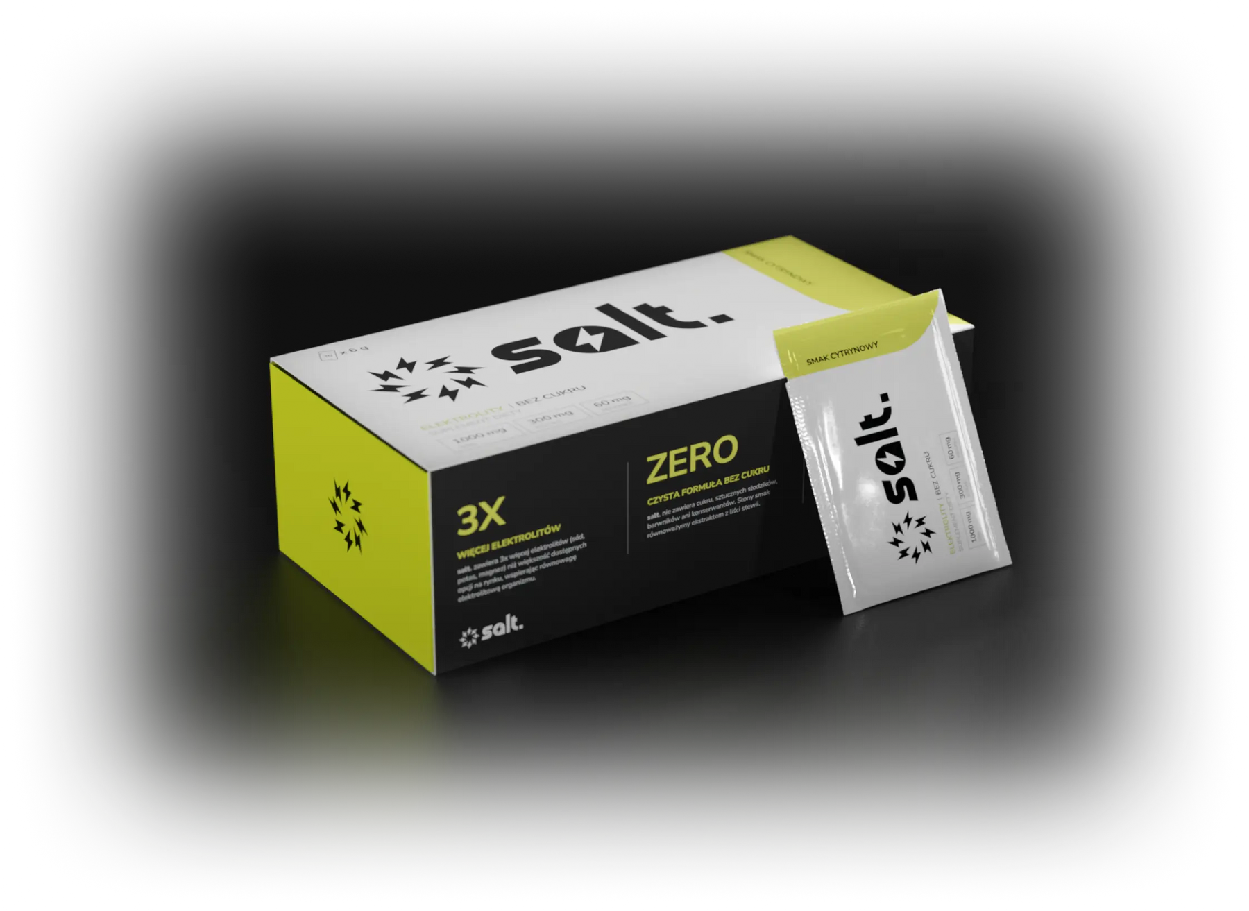 salt. zawiera nawet 3x więcej elektrolitów (sód, potas, magnez) niż większość opcji dostępnych na rynku, a zawarty w nim magnez wspiera równowagę elektrolitową organizmu.